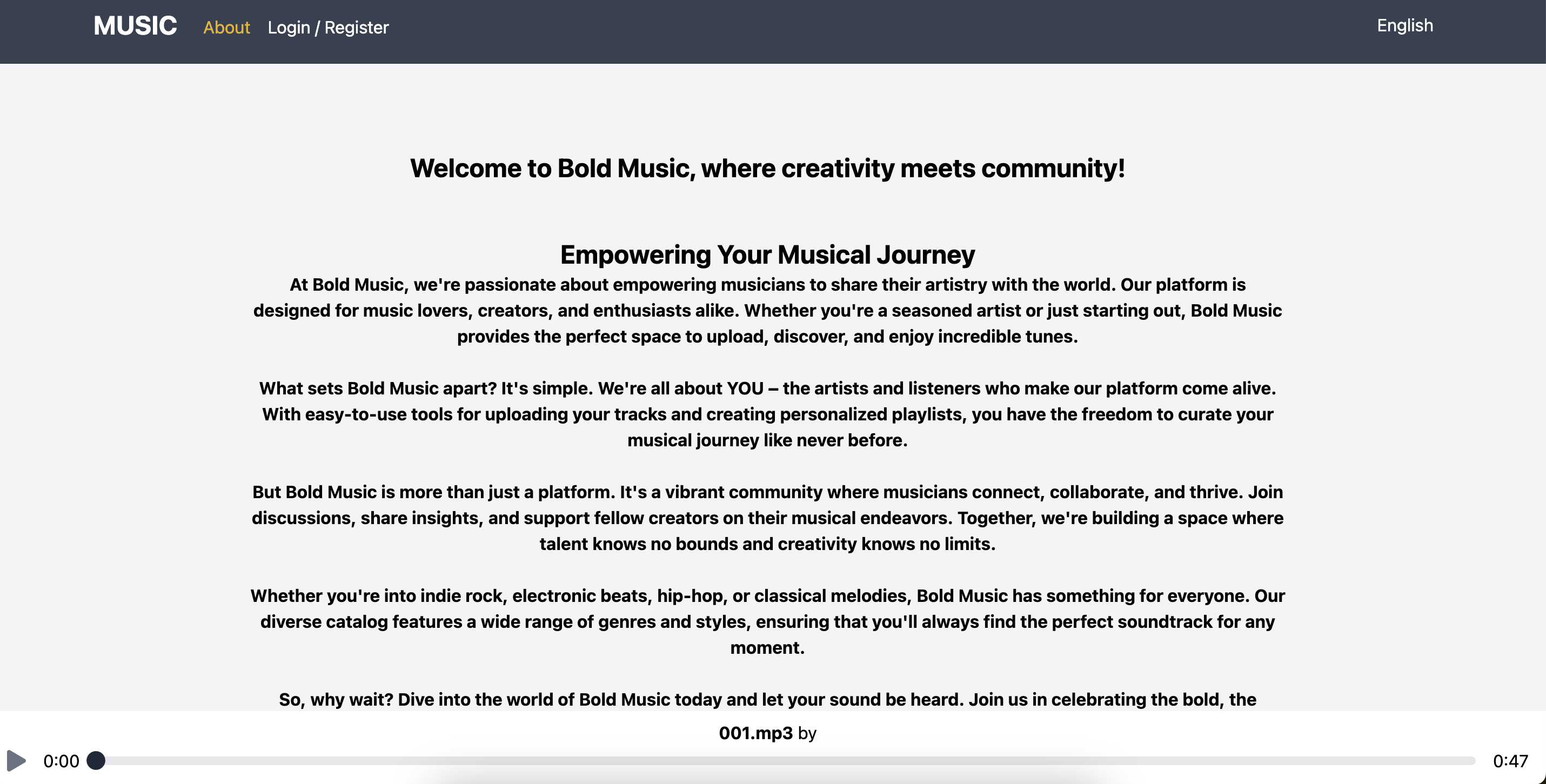 Bold Music is a music streaming platform where users can upload unlimited music and listeners can enjoy free access.